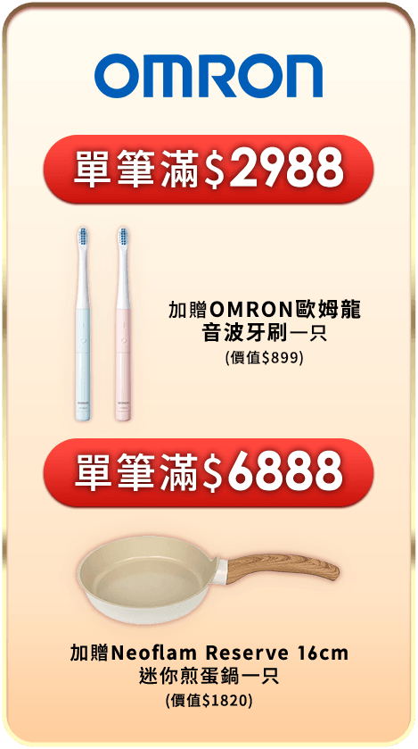 優惠商品數量有限,售完為止。本廣告活動頁商品規格、顏色、價位、贈品如與購物車不符,以購物車標示為準